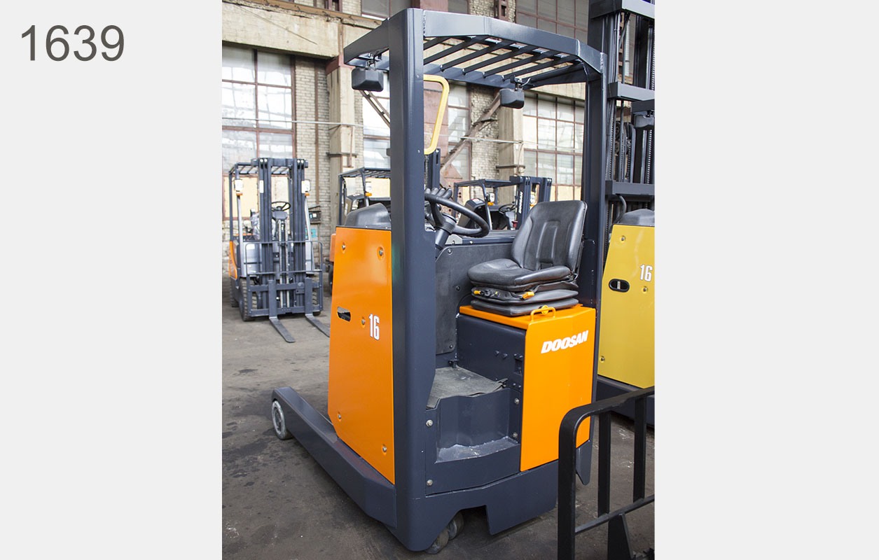 Электрический Ричтрак Doosan Б/У с интентарным номером 1639 2007 года выпуска. Состояние - Хорошее. Имеет грузоподъемность 1600 кг. Гарантия: .
